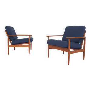 Fauteuil en bleu et teck par Alf Svensson pour Dux, années 1960