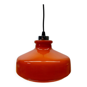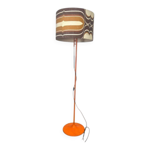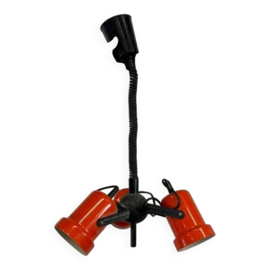 Fauteuil orange avec structure en métal noir et beaux accoudoirs en bois
