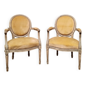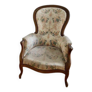 Fauteuil style Louis XV en velours Beige Rosé Francais