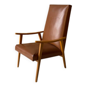 Fauteuil vintage brun / oker / un siège sur roulettes