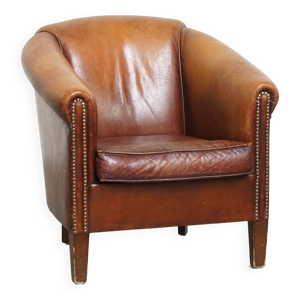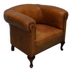 Fauteuils de club en cuir couleur cognac néerlandais vintage, ensemble de 2