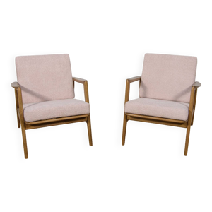 Fauteuils Mid Century en Lin Beige, par Edmund Homa, 1960s, Set de deux