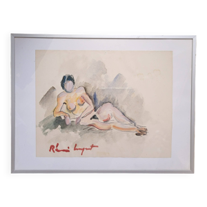 Femme Nue et Son Chien (Lévrier) - Statue en Céramique Beige - Signée Charles Lemanceau - 1930