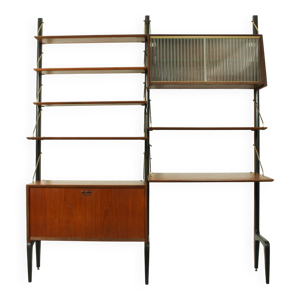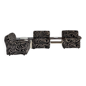 Grand buffet modulaire en bois ébène avec accents en aluminium des années 1980