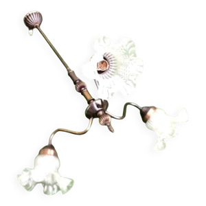Grand lustre 6 tulipes opaline et 6 pointes anthracite 1950