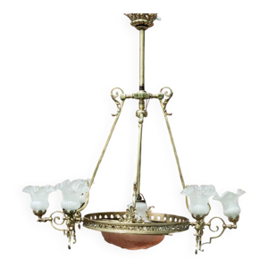 Grand lustre en laiton doré et verre cristal, attribué à Palwa, Allemagne
