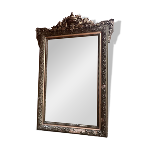 Grand miroir Napoléon III, fronton à décor d'un mascaron. 184 cm