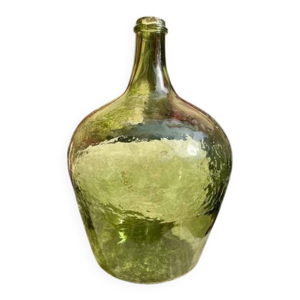 Grande dame-jeanne en verre vert français
