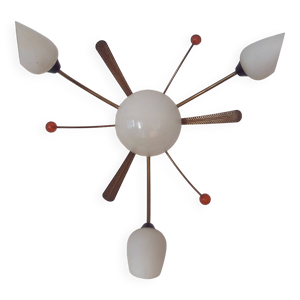 Grande paire d’appliques murale en laiton et opaline orange