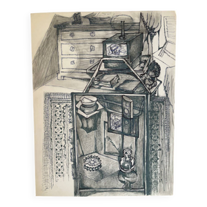 Grande porte d'intérieur en chêne peinte avec ses gonds