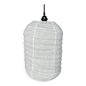 Grande suspension en rotin et lin naturel japonisante ronde aplatie (Labu) H57 D80