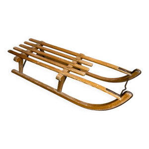 Grande table basse luge sculptée XIXème art populaire, France