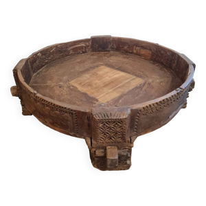 Grande Table Chakki Ronde Sculptée Antique Indonésienne / Indienne