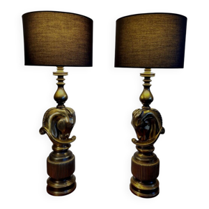 Grote gepatineerde glassen tafellamp van Laque Line jaren 1970