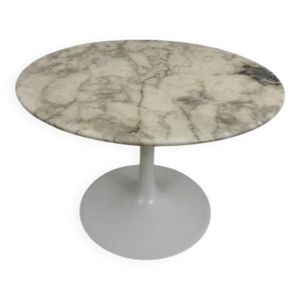 Guéridon rond en marbre aluminium et Rilsan blanc Eero Saarinen (1910-1961), Edition Knoll :