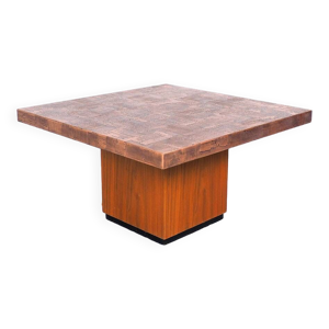 Heinz LILIENTHAL (1927-2006), table basse, bois, plaque gravée, années 1970