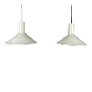 Holmegaard - Michael Bang - Suspension triangulaire Raindrop - Blanc opale - Teck - Suspension design milieu de siècle