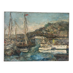Huile sur toile /couteau, hameau de campagne, signature à identifier