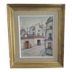 Huile sur toile, Scène Bretonne, village breton, signé Le Hellocq, Pont Aven