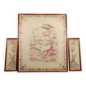 Important vide poche aux oiseaux et aux cerises en bronze argenté