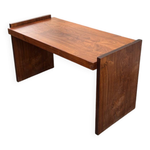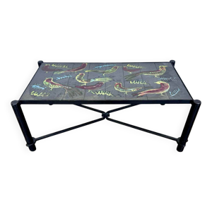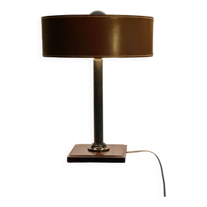 Jacques Adnet table basse cuir rouge piqué sellier et laiton 1950