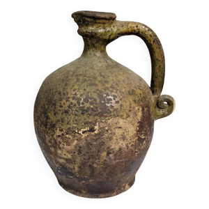 Jarre traditionnelle wabi sabi en céramique grès avec anses, 1900