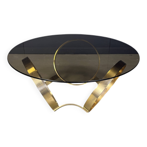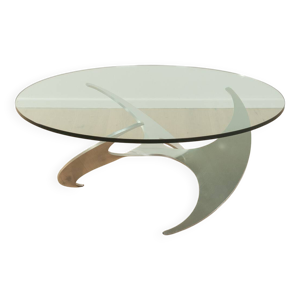 Knut HESTERBERG Table basse ronde en verre et aluminium poli