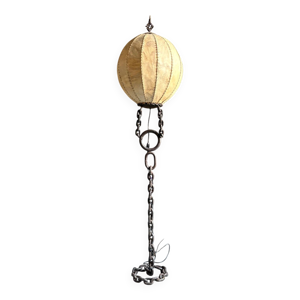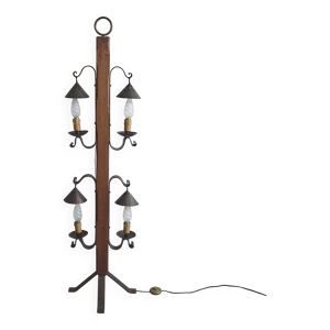 Lampadaire brutaliste en chêne avec 4 sphères, années 1970 par Temde Leuchten