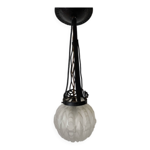 Lampe 1930 fer forge tulipe pâte de verre signee
