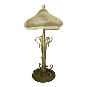 Lampe à poser champignon en verre et cuivre art déco