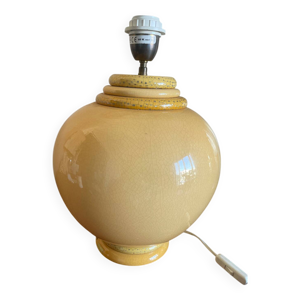 Lampe ancienne kostka céramique miel & or + abat-jour tissu drappé vin
