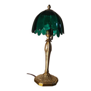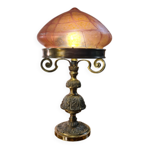 Lampe bronze art ancien Napoléon 3 tres jolie tulipe en pate verre non signé