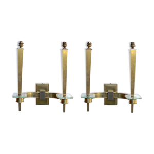 Lampe bronze art deco avec jolie tulipe violette, 41x15