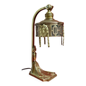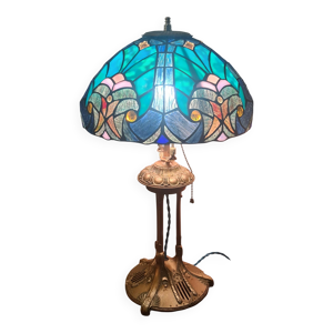 Lampe bronze art nouveau tulipe pate de verre signé lumieres de la ville 40