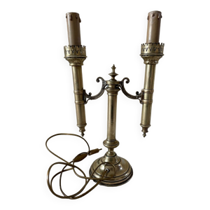 Lampe candélabre 3 feux en métal et laiton doré, lampe bouillotte
