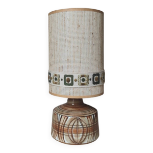 Lampe céramique Jersey Pottery années 70 vintageavec abat-jour en macramé