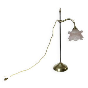Lampe de bijoutier ancienne , Pied argenté ,Tulipe rose en verre dépoli