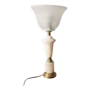 Lampe de table néo-classique en agate et laiton doré