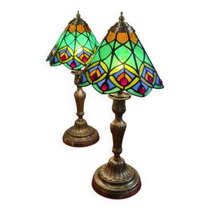 Lampe de table Tiffany 28x20x41 cm beige verre lampe de bureau Tiffany