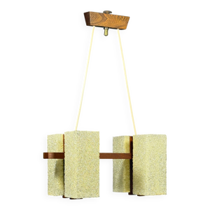 Lampe en teck et abat-jour feuille de maïs, circa 1980