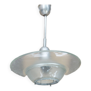 Lampe Holophane, Art déco, 30, structure en verre geribbelde, verre gegoten
