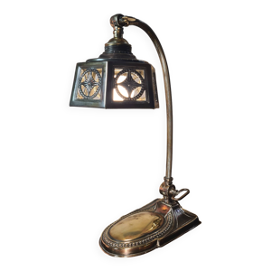 Lampe laiton polie 1970 abat jour pate verre vianne 56x35 elec ok