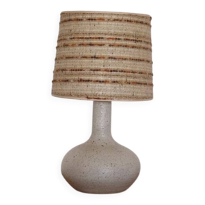 Lampe vintage en grès vernissé avec abat-jour peint à la main