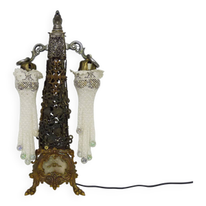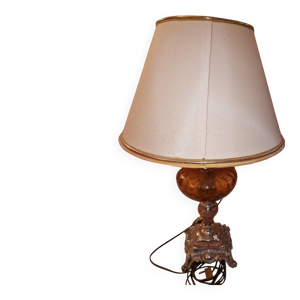 Lampe vintage sur pied avec abat-jour en verre et abat-jour en acier perforé