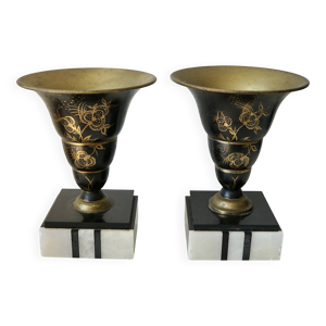Lampe1900 laiton socle fonte tres lourd , tulipe rouge peint et or