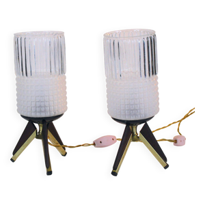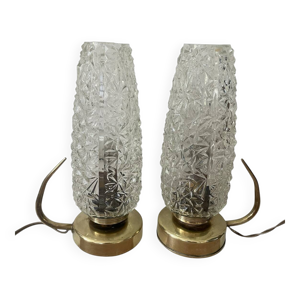 Lampes de chevet en verre cristal torsadé, France du milieu du siècle - une paire