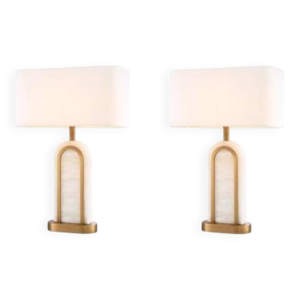 Lampes de table vintage en bronze, laiton et travertin à la manière de Maison Charles, années 1970, lot de 2