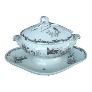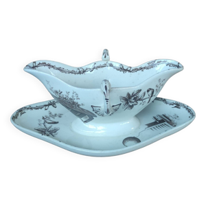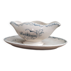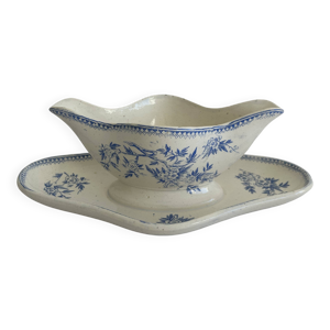Large saucière ancienne sur plateau faïence Sarreguemines U&C Jardinière