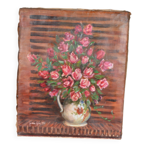 Les roses, huile sur toile signé Mahelin