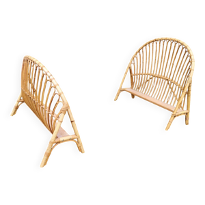 Lit corbeille en rotin vintage 1950